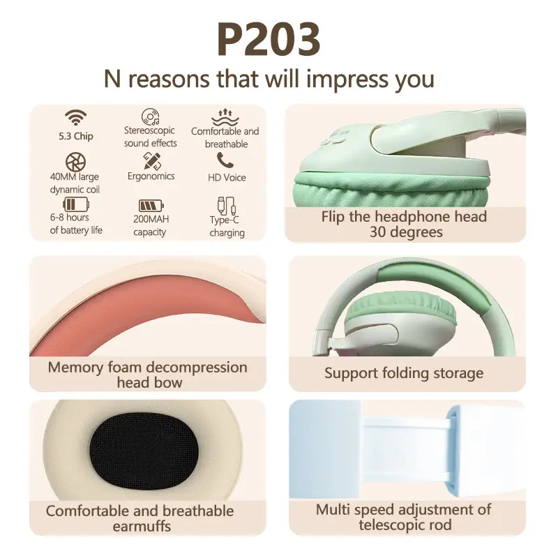 P203 Bluetooth headset with heavy bass and long battery life in stock