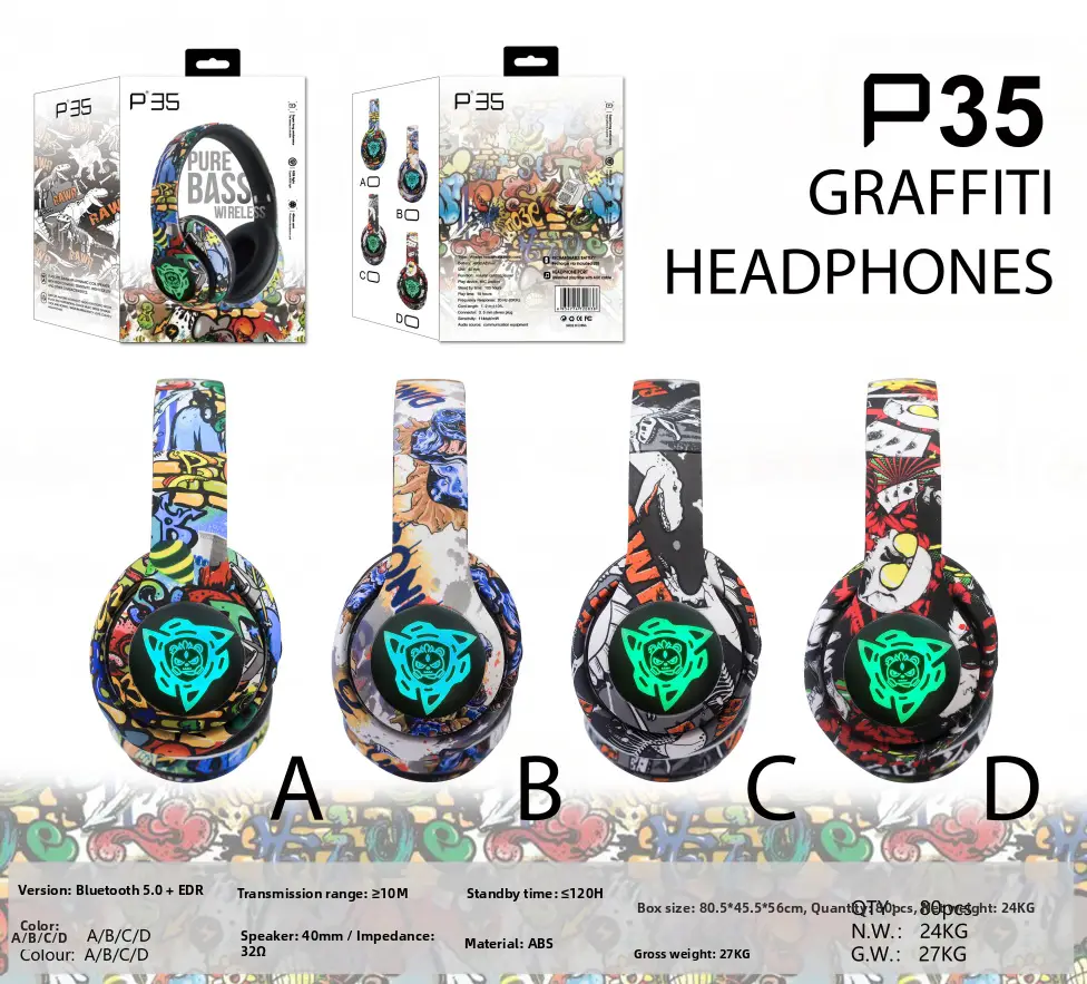 P35 Wireless Graffiti Call Music Over-Ear Bluetooth Headphones