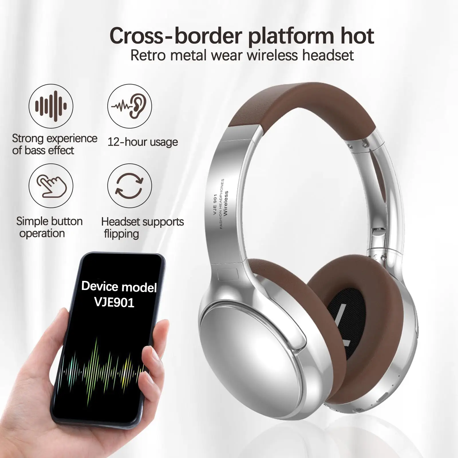 VJE901 Retro Style Sporty Metal Retractable Wireless Bluetooth Headphones